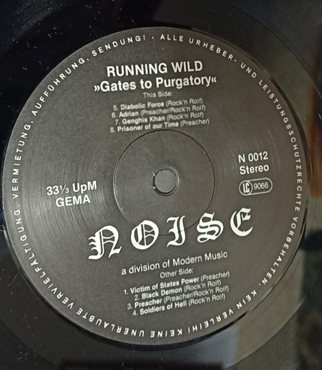 Running Wild Gates To Purgatory LP 1984 NOISE N 0012 German 1st Press 1150 р