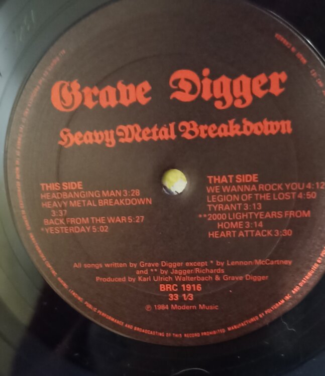Grave Digger - Heavy Metal Breakdown 1984 Vinyl LP Banzai Records 1000 р