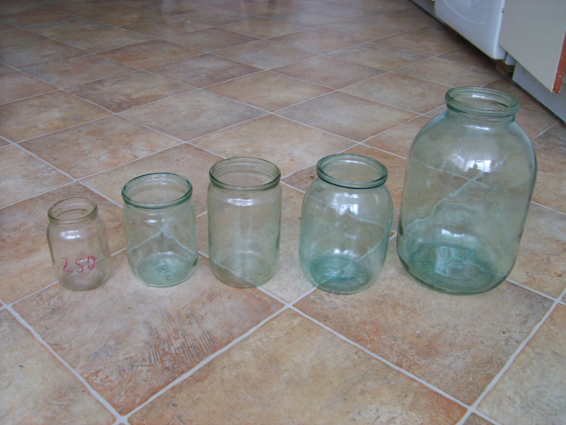 Стандартные стеклобанки - 0,5л по 4 лея(120 шт. ); 0,6-0,7л по 6 леев(100 шт. ); 1л по 8 леев(100 шт. ); 1.5л по 10 леев, 2л по 11 леев, 3л (150 шт. ) по 12 леев; 10 л (10 шт. ) по 100 леев. Также 0,6-0,7л по 6 леев(100 шт. ) с резьбовой крышкой. Звонить до 24.00.