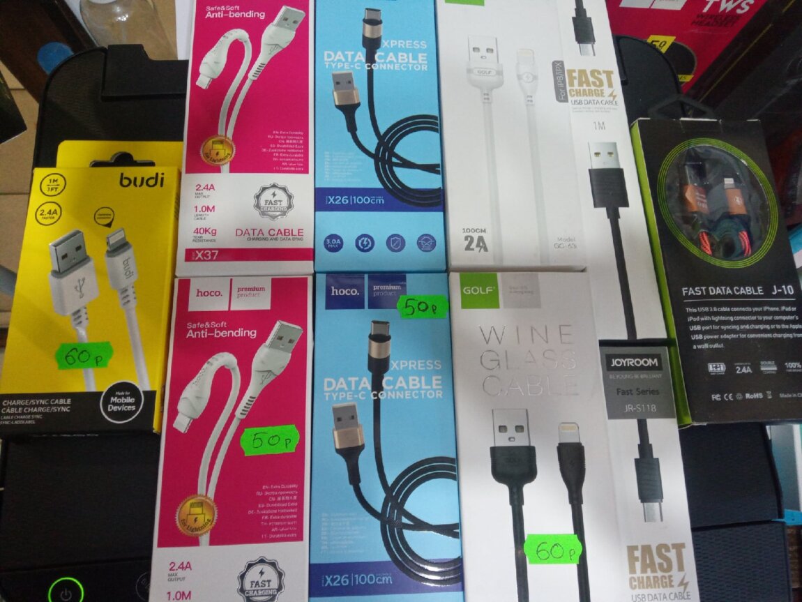 В ассортименте micro usb, type c, lighting.
