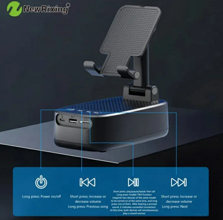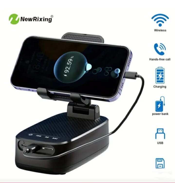 Беспроводная колонка с держателем для телефона, TWS, акк. 1800мАч, громкая связь, портативный Power Bank, 6 часов воспроизведения, отличный звук, компактный размер.