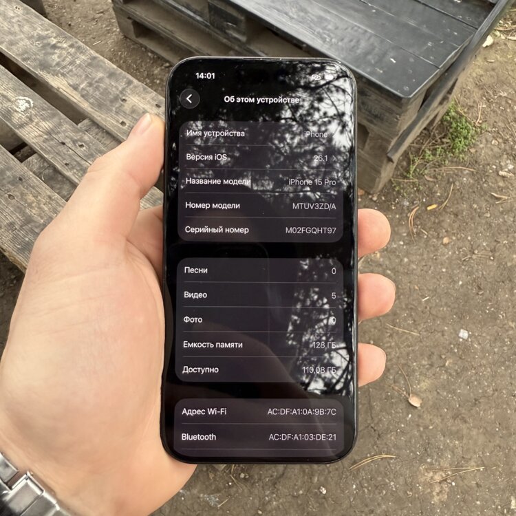 - iPhone 15 Pro 128Gb. После покупки было наклеено защитное стекло, носился в чехле. Состояние идеальное!