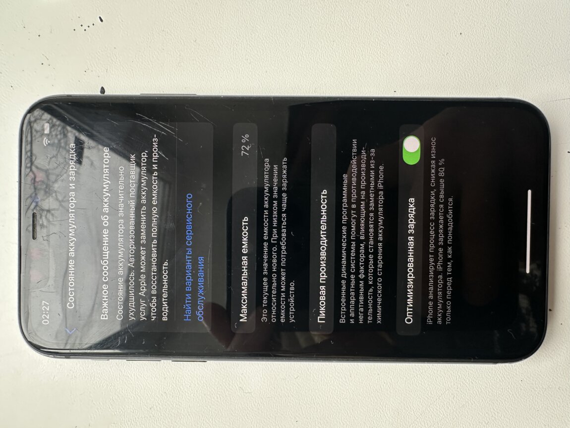 • Аккумулятор — 72%