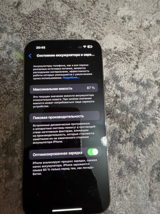 Батарея 87% оригинал, состояние 9/10