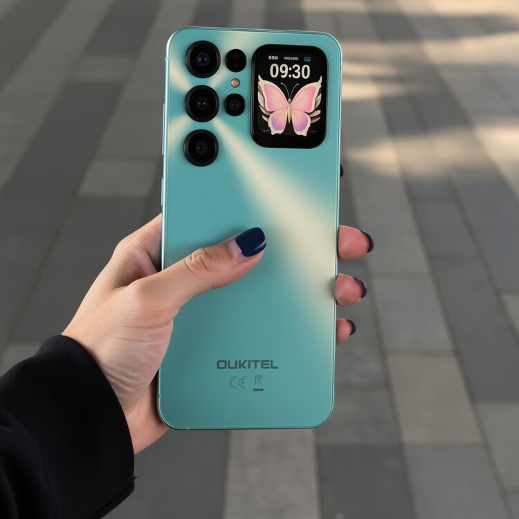 Android 15. 256 ГБ встроенной памяти (есть слот для SD-карты) + 8 ГБ оперативной. Камера 64 МП. Аккумулятор 6000 мАч. Телефон обладает вторым вспомогательным дисплей на тыльной стороне для доступа к камере, уведомлениям, часам и прочим функциям.