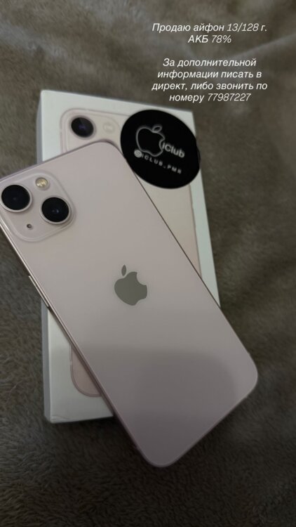 Продам iPhone 13. АКБ 78%. 128 г. памяти. Ни одной царапины, состояние идеальное. 300$. Торг