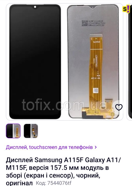 Продам новый Дисплей Samsung A115F Galaxy A11/M115F, версія 157.5 мм модуль в зборі (екран і сенсор), чорний, оригінал