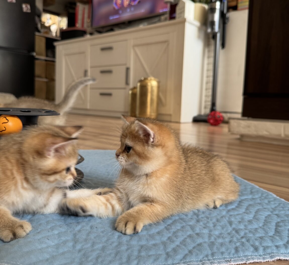 Продаем шотландских котят. Окрас золотая шиншилла, табби на золоте. Есть котики и кошечки. Милые, здоровые, активные малыши растут в домашних условиях ласковые и ручные. Хороший аппетит. Кушают мясной микс, осваивают лоточек и когтеточку. Оба родителя в окрасе золотая шиншилла.