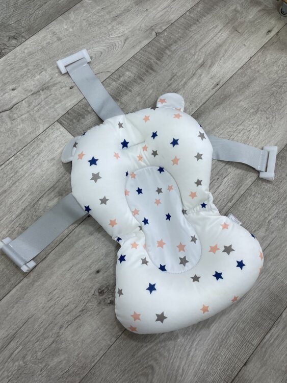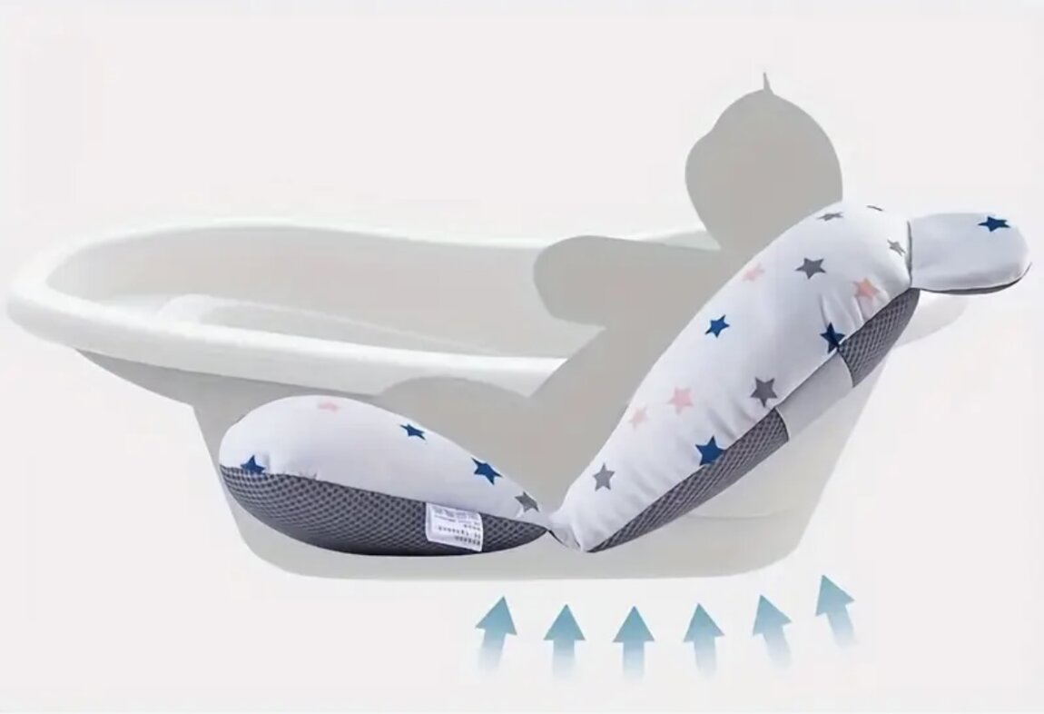 Поддерживает анатомически правильное положение малыша. Подходит на любую ванночку. Гипоаллергенный, нескользящий, быстро сохнет.