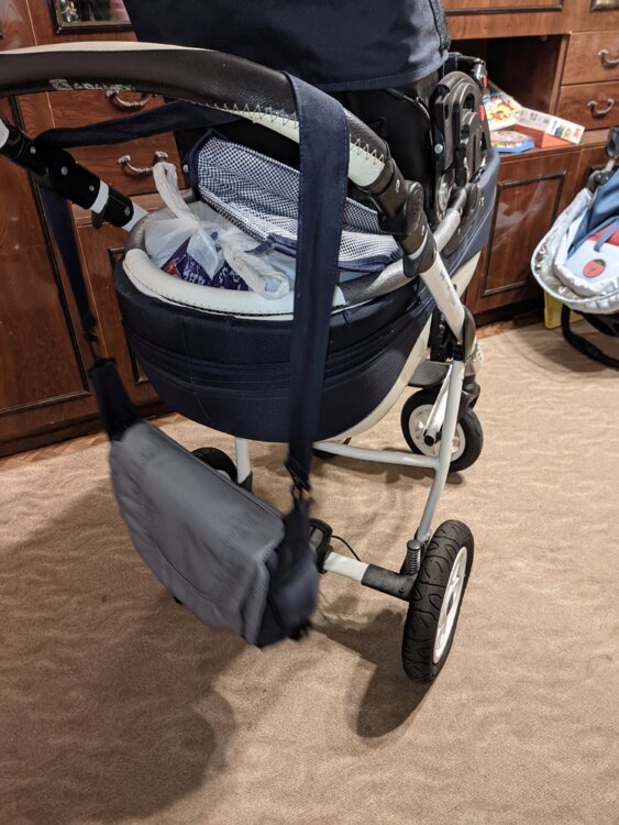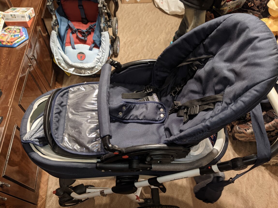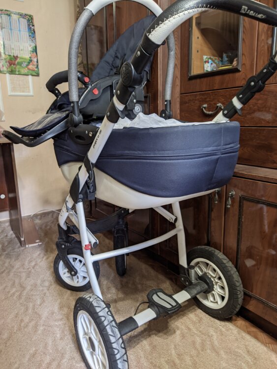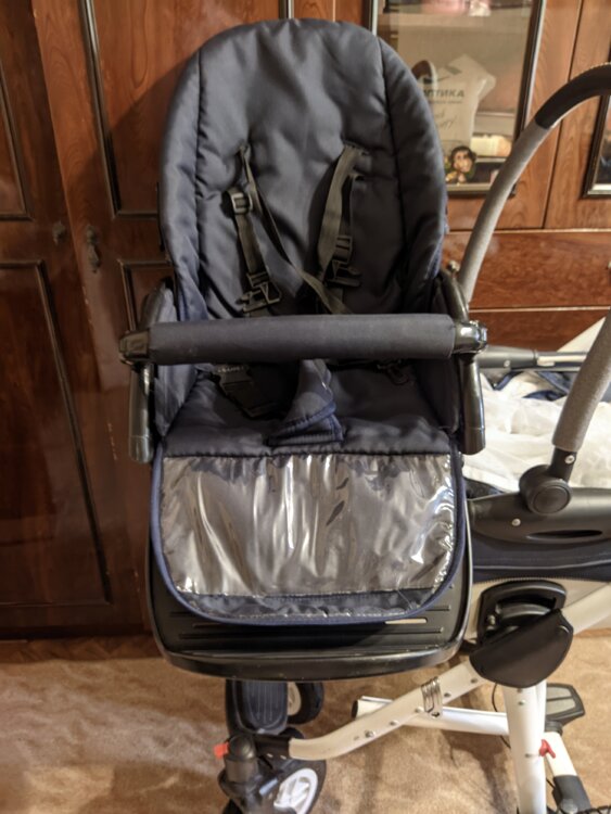 Люлька и стульчик съемные, передние колеса с фиксаторами от поворота