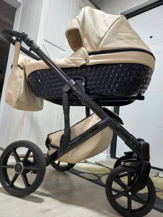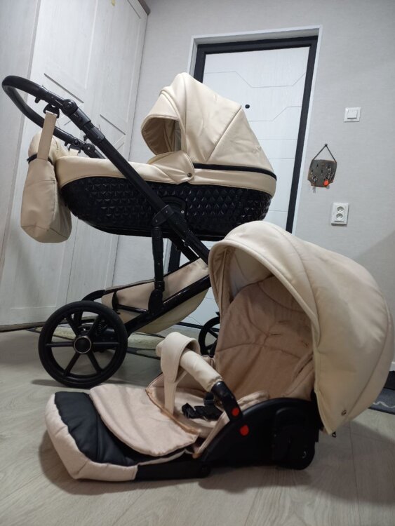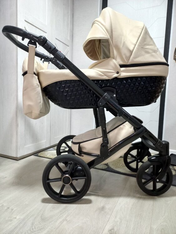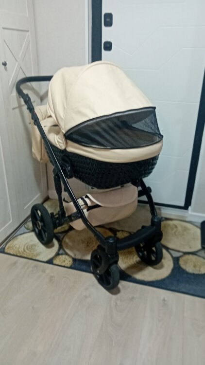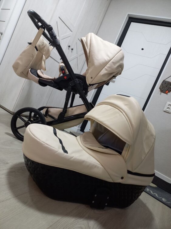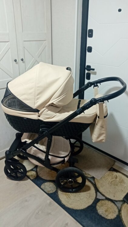 Коляска маневренная, на больших колёсах, ход очень мягкий. Люлька, прогулочный, блок, вместительная корзина, большая, удобная сумка, протевоветровые перчатки, москитная сетка, дождевик, подстаканник в комплекте.