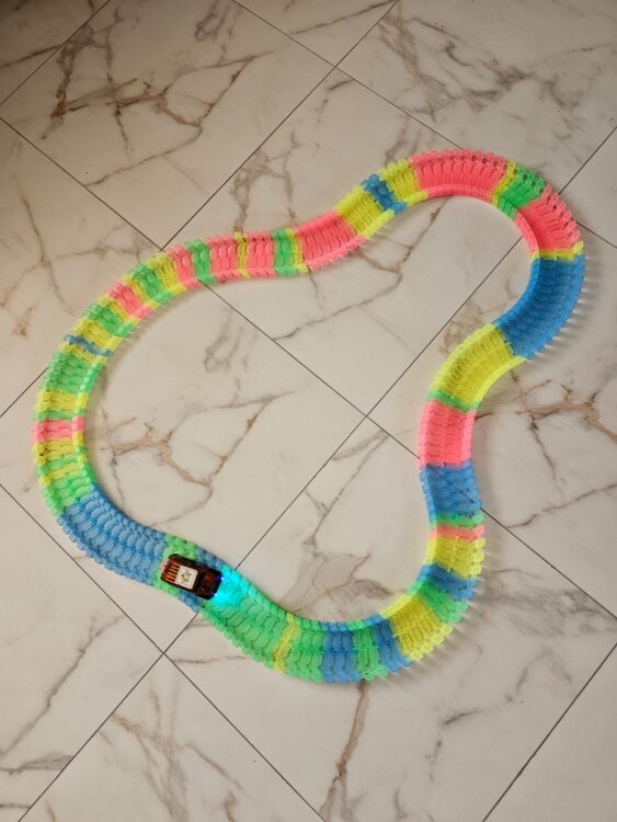 Гибкий яркий автотрек с машинкой (светятся фары, едет от батарейки) - 130 руб.