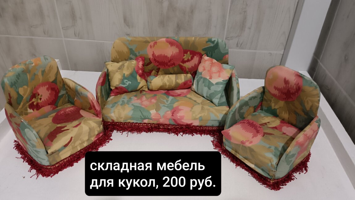 10. Складная мебель для кукол, диван и два кресла, 200 руб.