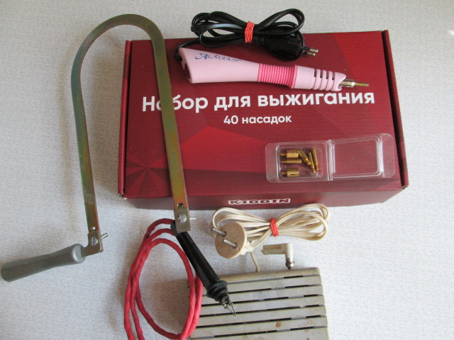 НАБОР ДЛЯ ВЫПИЛИВАНИЯ+ВЫЖИГАНИЯ \СОВЕТСКИЙ ПРИБОР\ И ВЫЖИГАТЕЛЬ СОВРЕМЕННЫЙ С НАСАДКАМИ!! ВЕСЬ КОМПЛЕКТ= 400 руб.