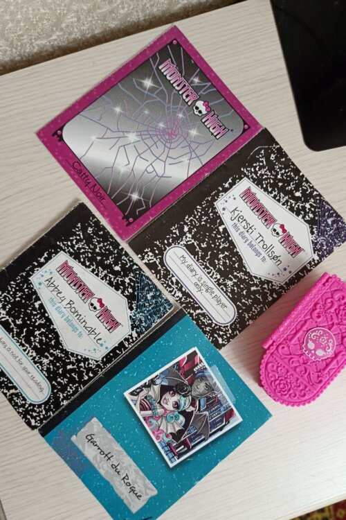 Дневники monster high по 20 рублей (кроме дневника Эбби - он 10 рублей из-за состояния), чемодан Скелиты - 50 рублей