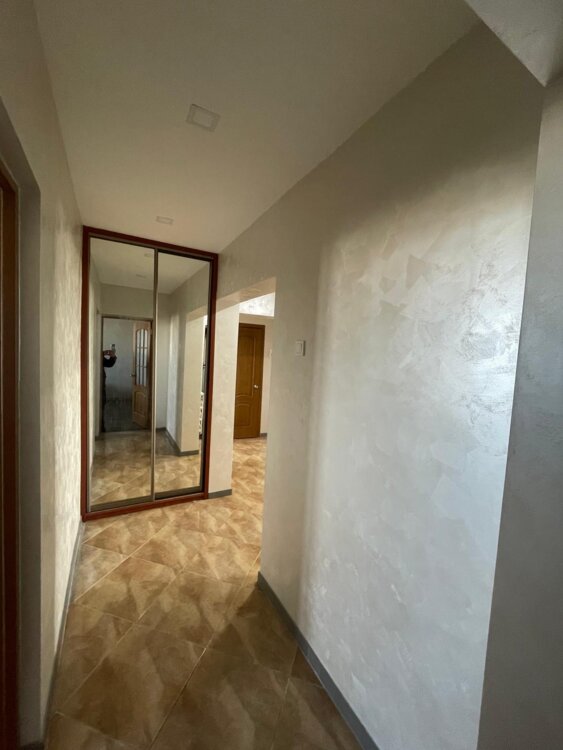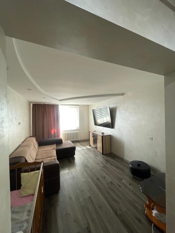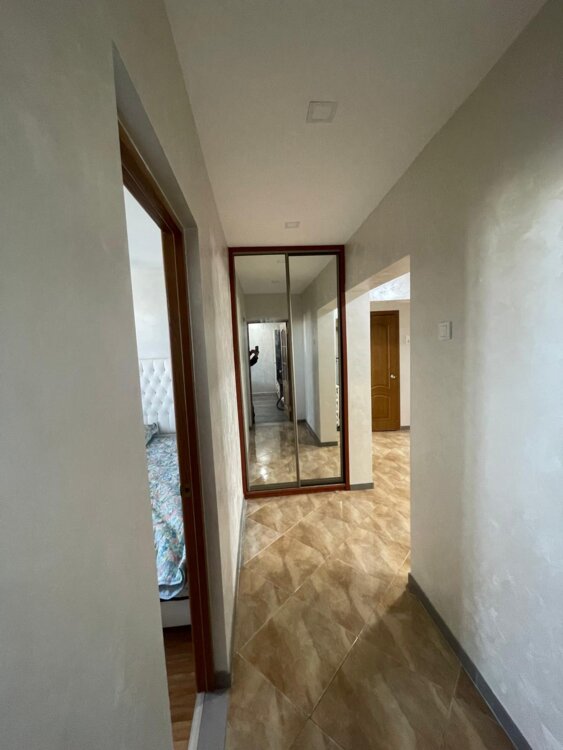 Квартира расположена в районе с развитой инфраструктурой, рядом со школой, детским садом, рынком и другими пунктами необходимости.