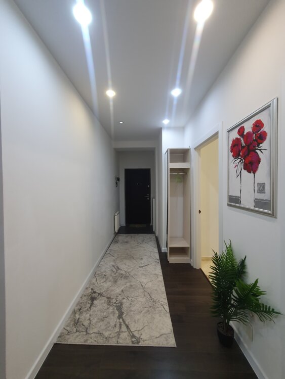 Установлены стиральная и сушильная машины AEG (Германия) – гарантия безупречного ухода за бельем. Теплый пол в кухне и коридоре