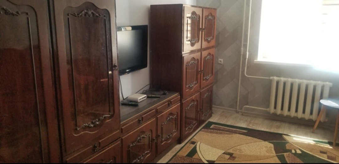 Сдаётся чистая 2х комнатная квартира, 1 эт. 5ти этажки, р-н Совхоз Фрунзе, 2 минуты ходьбы от остановки, состояние жилое, в квартире есть всё необходимое: мебель, посуда, плита, холодильник, тв, стиральная машина автомат, интернет.