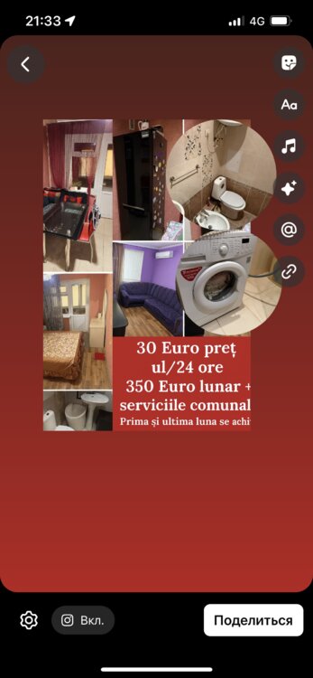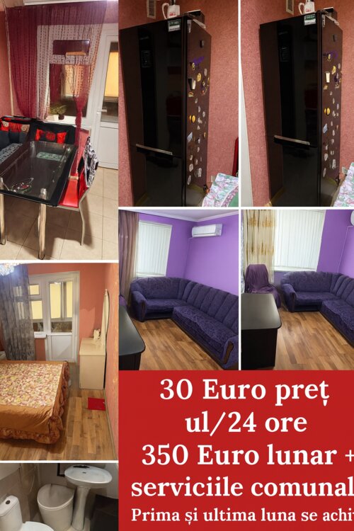 la încheierea contractului se achită o lună 350 euro + (suma de garanție 350 euro) care se întoarce la eliberarea apartamentului.