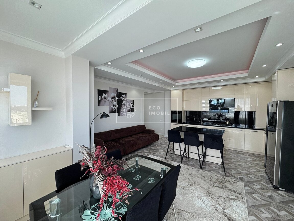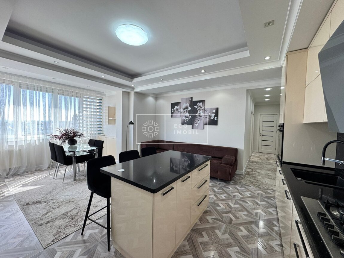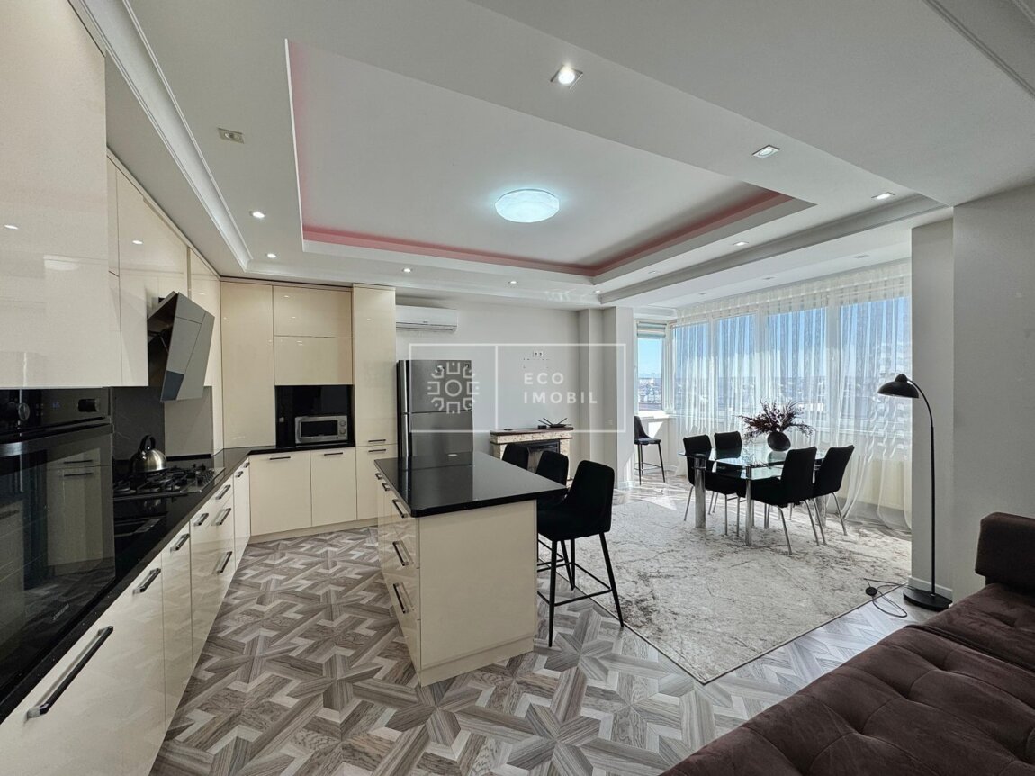 Spre atenția dumnevoastră, apartament cu 2 odăi și living comasat cu bucătăria, bloc nou, amplasat în sect. Centru, str. Lev Tolstoi. Imobilul, cu o suprafață de 93 m.p., este poziționat la etajul 16 din 16. Caracteristici: design individual, dispune de o reparație EURO, obiecte sanitare sunt instalate, dotat cu mobilă și tehnică de uz casnic, încălzire autonomă. Compartimentare: 2 dormitoare, living, bucătărie, două blocuri sanitare, garderobă. Blocul locativ dispune de pază și supraveghere video 24/24, teren de joacă, zonă de agrement. În imediată apropiere se găsesc numeroase puncte sociale și comerciale cum ar fi Unic, supermarket, farmacie, bancă, grădiniță, sală de fitness, restaurante, cafenele, parc etc. Acces facil la transport public în orice direcție a orașului. Предлагается вашему вниманию квартира с 2 спальнями и гостиной, совмещённой с кухней, в новом доме, расположенном в секторе Центр, на ул. Лев Толстой. Квартира общей площадью 93 кв.м., находится на 16 этаже из 16. Характеристики: индивидуальный дизайн, выполнен евроремонт, установлена сантехника, квартира оснащена мебелью и бытовой техникой, автономное отопление. Планировка: 2 спальни, гостиная, кухня, два санузла, гардеробная. Жилой комплекс оснащён охраной и видеонаблюдением 24/24, детской площадкой и зоной отдыха. В непосредственной близости находятся многочисленные социальные и коммерческие объекты, такие как торговый центр UNIC, супермаркет, аптека, банк, детский сад, фитнес-зал, рестораны, кафе, ...