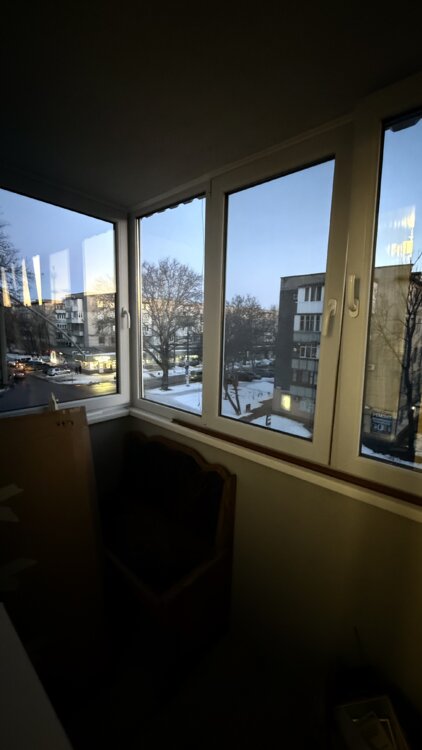 Заменено: обои в кухне, линолеум в комнате, застекление балкона, двуспальная кровать, шкаф-купе, телевизор, шторы, стол и стулья в кухне.