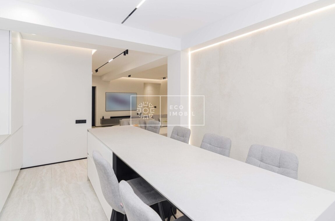 Vă propunem spre închiriere un apartament cu 3 dormitoare și living spațios, bloc nou, situat în sectorul Centru, strada Melestiu. Imobilul, cu o suprafață de 125 m.p., este poziționat la etajul 8 din 16. Caracteristici: design individual, reparație de cea mai înaltă calitate, obiecte sanitare instalate, dotat cu mobilă și tehnică de uz casnic, încălzire autonomă, aer condiționat, mașină de spălat vase, mașină de uscat, geamuri termopane, curte închisă cu teren de joacă pentru copii. Compartimentare: 3 dormitoare, antreu, living spațios, bucătărie, 2 grupuri sanitare, garderobă și loc de parcare inclus în preț. Blocul locativ se află în inima parcului Valea Trandafirilor, dispune de pază și supraveghere video 24/24, teren de joacă, zonă de agrement. În imediata apropiere se găsesc numeroase puncte sociale și comerciale, farmacie, bancă, grădiniță, sală de fitness, parc etc. Acces facil la transportul public în orice direcție a orașului. Предлагаем в аренду квартиру с 3 спальнями и просторной гостиной в новом доме, расположенном в секторе Центр, на улице Мелестиу. Квартира общей площадью 125 кв. м находится на 8 этаже из 16. Характеристики: индивидуальный дизайн, ремонт высочайшего качества, установленная сантехника, полностью меблирована и оснащена бытовой техникой, автономное отопление, кондиционер, посудомоечная машина, сушильная машина, стеклопакеты, закрытый двор с детской площадкой. Планировка: 3 спальни, прихожая, просторная гостиная, кухня, 2 санузла, гардеробная, ...