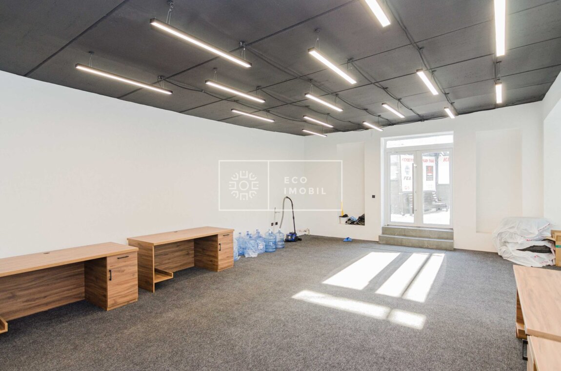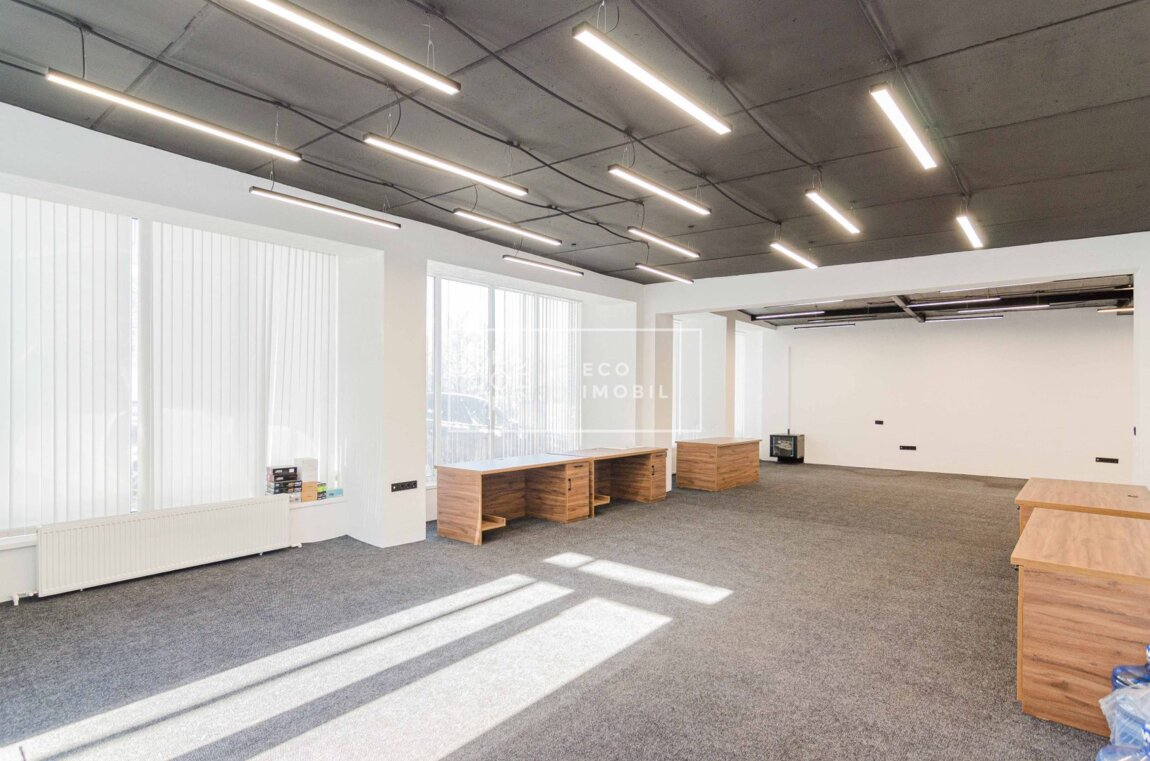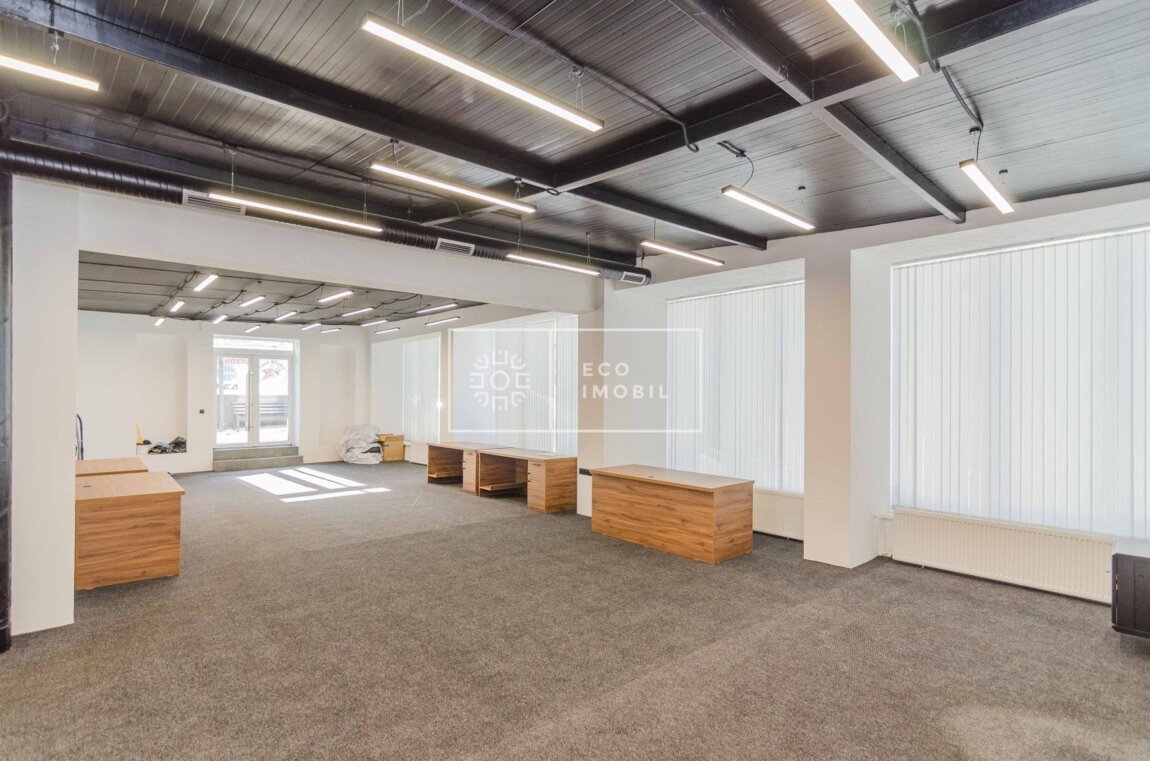 Chirie spațiu comercial, oficiu în sect. Centru, str. Valea Trandafirilor. Caracteristici: Suprafață de 360 m.p Open space Reparatie finisată Geamuri panoramice Parter Sistem antiincendiu Posibilitatea reamenajării Prima linie Acces la transportul public Parcare 3-7 automobile Încălzire autonomă Reparație Bloc sanitare 2 Bucătărie Potrivit pentru: oficiu, reprezentanță, IT, call centru, etc. Сдаётся в аренду коммерческое помещение / офис в секторе Центр, на улице Валя Трандафирилор. Характеристики: Площадь — 360 кв.м Open space Отделка готова Панорамные окна Первый этаж Противопожарная система Возможность перепланировки Первая линия Доступ к общественному транспорту Парковка на 3–7 автомобилей Автономное отопление Отделка выполнена 2 санузла Кухня Подходит для: офиса, представительства, IT-компании, call-центра и др.