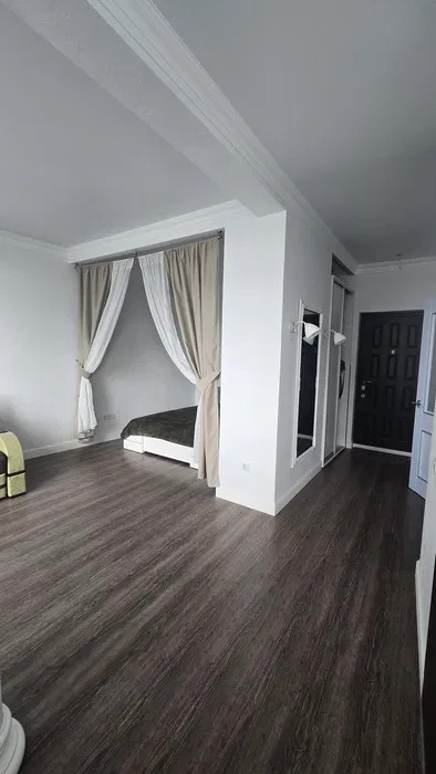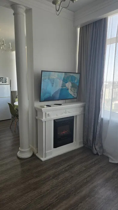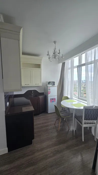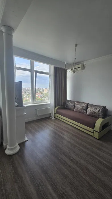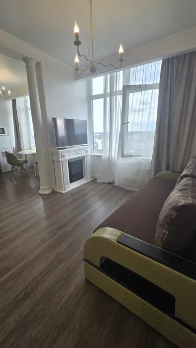 1 комнатная квартира -студия в Аркадии.Современный жилой комплекс.Квартира с новым ремонтом.Разделена на зону кухни и гостиную.Мебель, бытовая техника.Панорама города, Аркадии, боковой вид моря.Переуступка.ID 41376