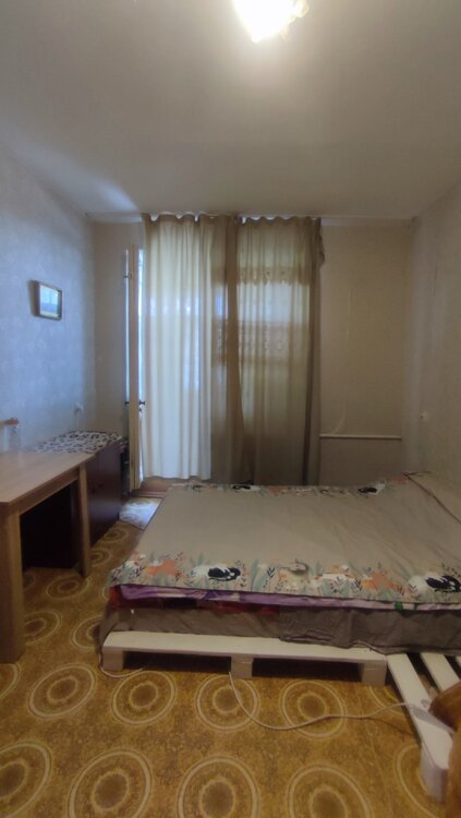 Квартира расположена на крайнем пятом этаже. Комнаты смежные, но можно разделить. Есть 3-метровый балкон (рамы деревянные). Установлен кондиционер, газовая колонка, двойная входная дверь. В остальном же квартира нуждается в хорошем ремонте.