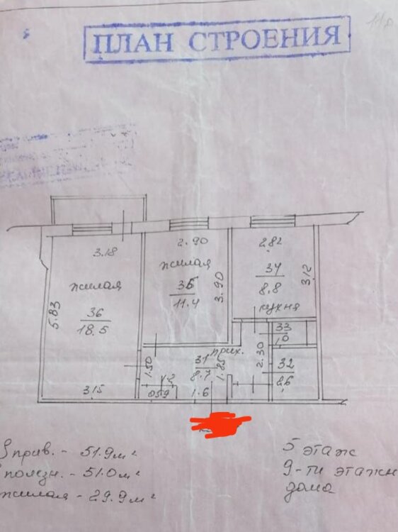 2-КОМ Красные Казармы 5/9 не угловая в жилом состоянии