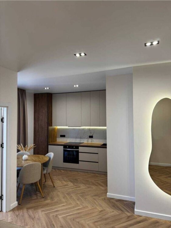 В продаже стильная 1-комнатная квартира площадью 43,3 м² с продуманной планировкой: кухня-гостиная, отдельная спальня, гардеробная и балкон. Квартира полностью перепланирована и оформлена с нуля — выполнен качественный ремонт по дизайн-проекту, никто не проживал. Интерьер выдержан в тёплых натуральных оттенках с использованием дорогих материалов: паркет «ёлочкой», лаконичная встроенная мебель, мягкое зональное освещение, дизайнерские светильники и зеркало с подсветкой. В спальне — уютная кровать с высоким мягким изголовьем, встроенные шкафы и прикроватные тумбы. Кухня-гостиная оборудована современной встроенной техникой, обеденной зоной и удобным местом для отдыха с диваном. Санузел стильный и функциональный — с душевой зоной и продуманной системой хранения. Балкон — идеальное место для утреннего кофе или вечернего отдыха. Звоните!Посредникам, просьба не беспокоить.ID объекта: 212274
