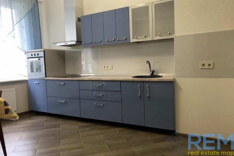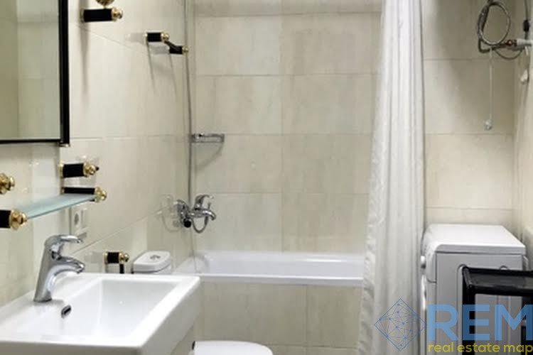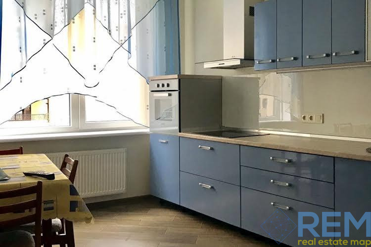 Большая кухня, две раздельные комнаты. Квартира укомплектована мебелью и техникой. Двуспальная кровать и диван, гардеробная, два шкафа-купе, ванна, духовка, стиральная машина, бойлер, кондиционер, плазма. Теплосчётчик.