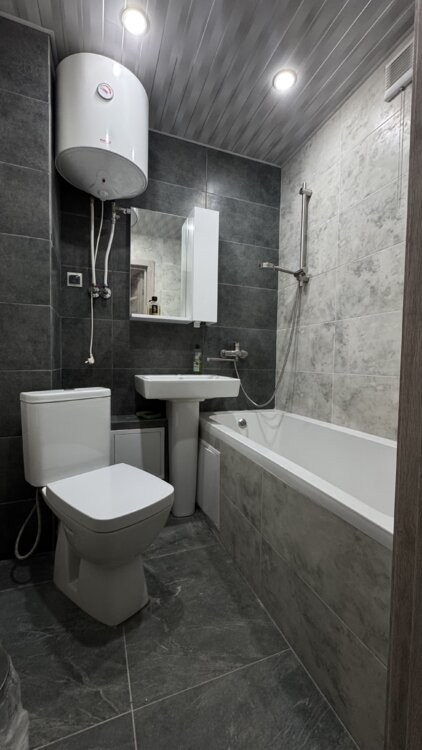 Всё новое — проводка, сантехника, полы, окна, двери, плитка и обои.