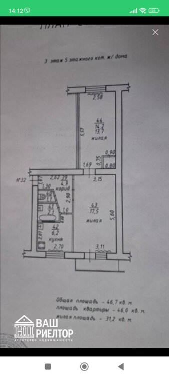 ~ Жилая площадь 31 кв. м.
