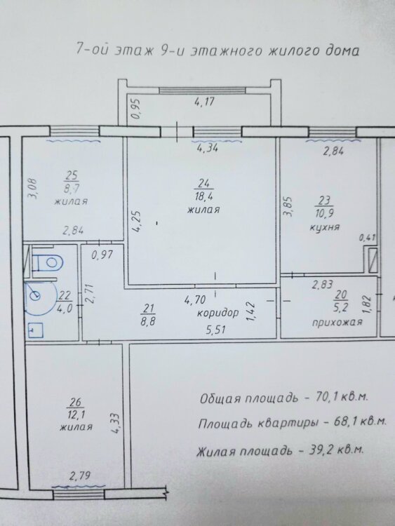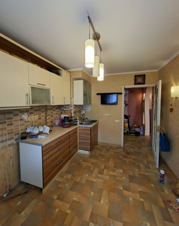 Большая тёплая квартира в жилом состоянии с ремонтом, все три комнаты раздельные, на 7 эт. в середине 9-эт. дома. Балкон застеклён. Санузел совмещён. Большая кухня. В квартире никто не проживает-собственник постепенно съезжает. Часть мебели остаётся по договорённости.