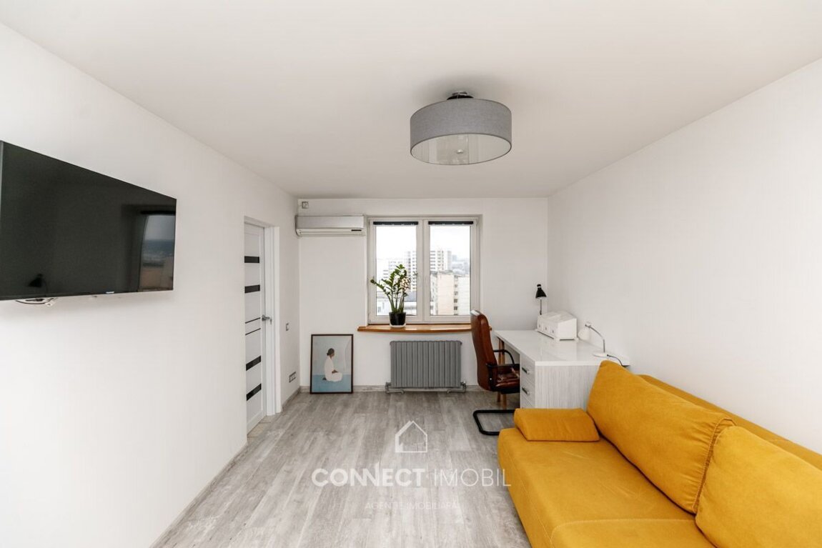 Spre vânzare apartament cu două camere + living, situat in sectorul CENTRU. Imobilul este situat la etajul 10 din 10, cu o suprafața de 83 m2. Facilitați: * Full mobilat; * Bloc dat in exploatare; * Geamuri termopane; * Incălzire autonomă; * Doua balcoane; * Ferestre panoramice; * Parcare de tip deschis, inchis; * Teren de joaca * Aparat de aer condiționat * Zonă cu parc; ATENȚIE! Acum poți achita comod in rate cu doar 30% rată inițială sau prin programul guvernamental Prima Casă Plus cu doar 10% prima rată! Compania CONNECT IMOBIL vă ajută in procesul de vânzare-cumpărare a unui imobil, teren sau spațiu comercial, beneficiind de consultanță juridică in domeniul imobiliar și accesarea unui credit ipotecar. TOATE OFERTELE DISPONIBILE LE GĂSIȚI AICI