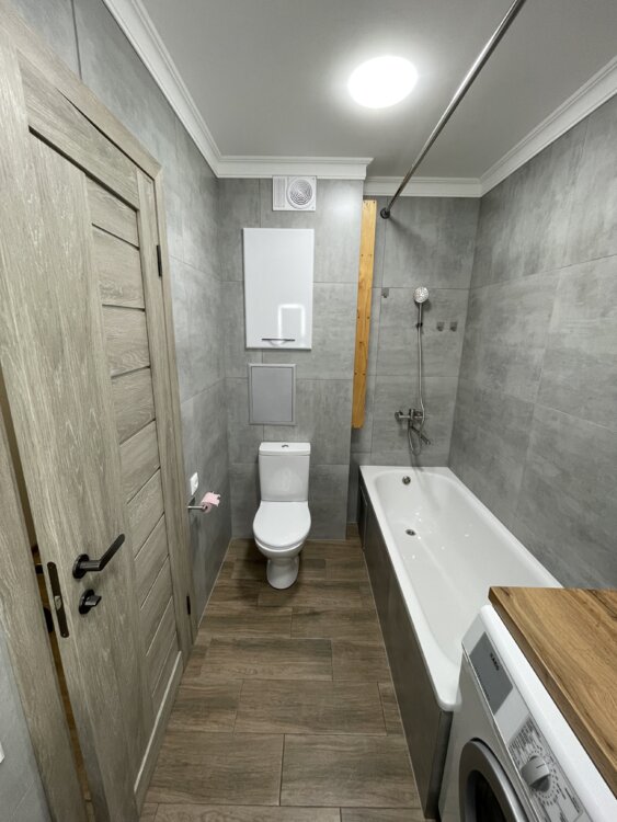 Индивидуальная планировка, увеличена площадь ванны и кухни.