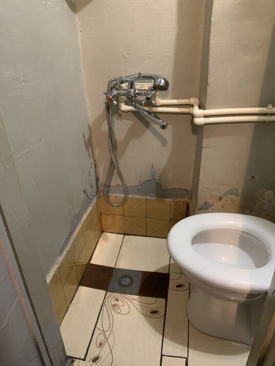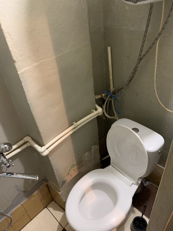 Установлен стеклопакет, сантехника из полипропилена.