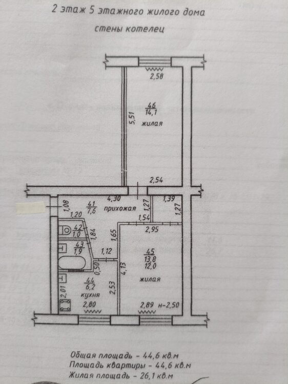 Suprafaţa totală44.6 m²