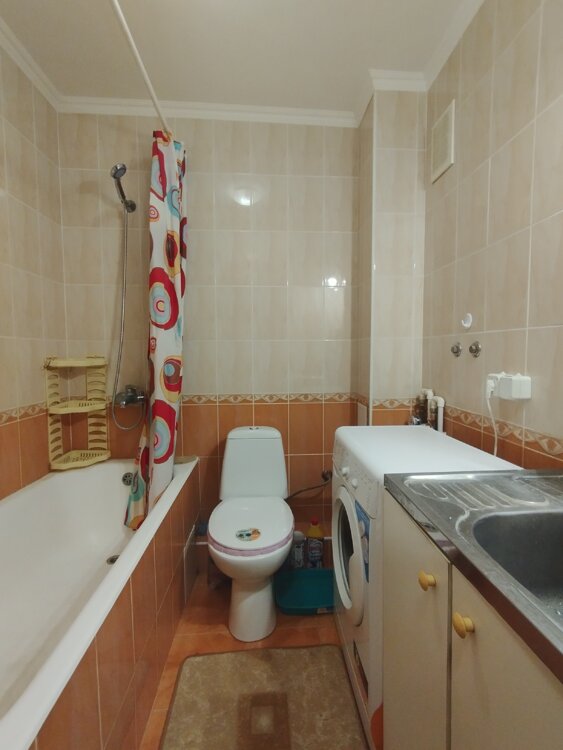 Санузел в кафеле совмещён