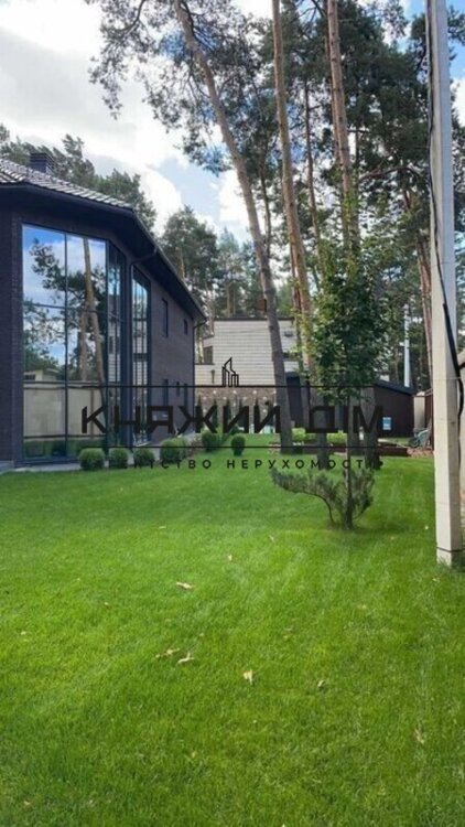 До продажу пропонується нове домоволодіння 2012 року із власним лісом 25 соток у Петропавлівській Борщагівці. Площа будинку 600 м2 + окремий будиночок охорони, тераса. Висота стелі мінімальна 3м/максимальна 6,5 м. Будинок побудований з червоної цегли, облицьований бельгійським клінкером. Клінкер випущений заводом у лімітованій кількості, був привезений із Бельгії за спецзамовленням. Натуральна черепиця Braas Topaz виробництва Німеччини. Утеплення стін – NEOPOR 100 мм, утеплення даху – Knauf 200 мм. Ландшафт По всій території проведено систему автополиву та вистелено рулонний газон, висаджено туї, встановлено "ліниві грядки". На території ростуть вікові сосни. Вікна – Reуnaers з максимально енергозберігаючими склопакетами; двері, ворота – Hormann. У будинку є ліфт виробництва Італії. 1-й поверх: Гардеробна, дві гостьові кімнати, гостьовий санвузол з душовою, просторий хол з каміном, кухня/вітальня з каміном Romotop, панорамні вікна, сауна, тренажерний зал, котельня, майстерня, гараж на два авто з входом прямо до будинку. 2-й поверх: 1 господарська спальня з каміном та санвузлом; дві однакові спальні зі своїми санвузлами, у всіх санвузлах душова та ванна, велика вбиральня, пральня, кабінет, великий хол з бібліотекою. Підвал: Винний льох та льох для продуктів з регулюванням необхідного мікроклімату для вина та продуктів. Мансарда: Кімната для хобі. У всьому будинку американські меблі преміум-класу Art Home Furniture. У господарській спальні ліжко King Size. Встановлено