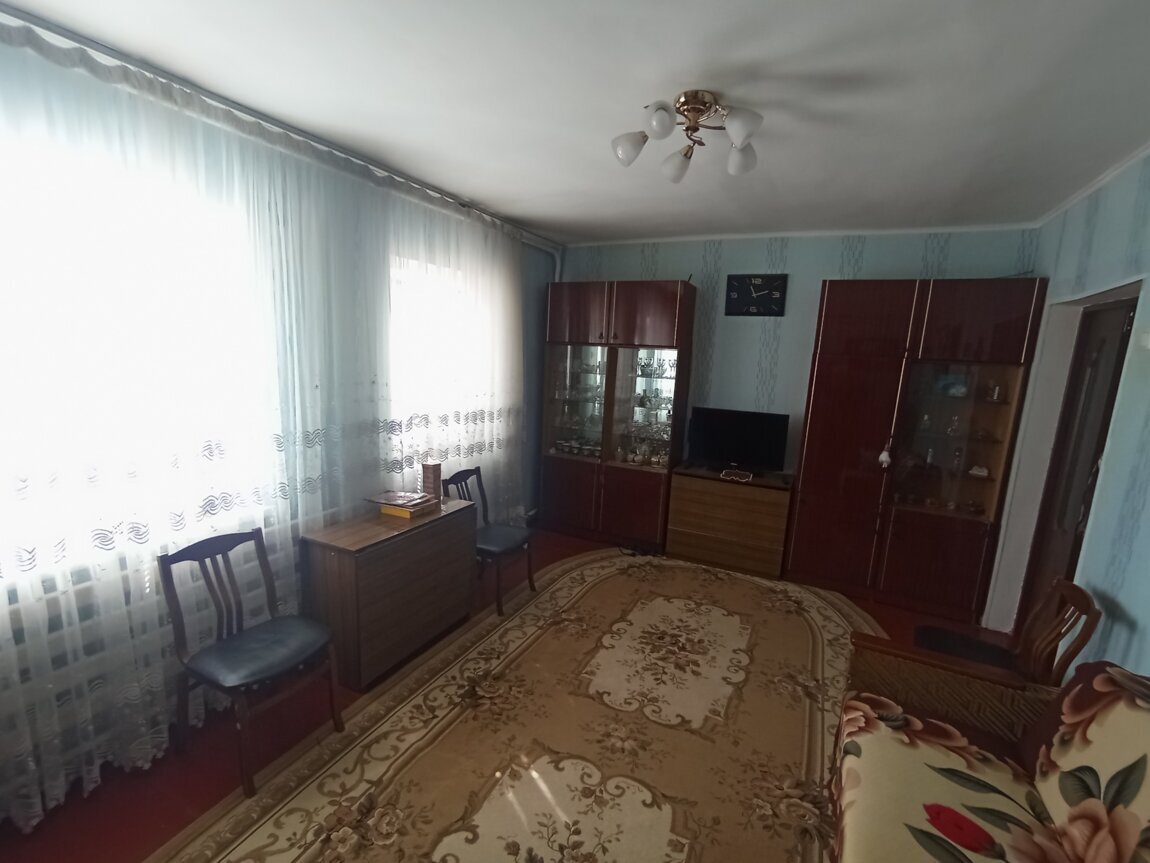 Продается просторный одноэтажный жилой дом с удобствами в доме, с мебелью и бытовой техникой (стиральная машина, бойлер, телевизоры, холодильник... ) состоящий из 4 жилых комнат, просторной кухни, санузла, душевой, подвала и коридора, общей площадью 89,7 кв. м., в доме установлены стеклопакеты, заменены межкомнатные двери, полы деревянные, стены глинобитные, фундамент бутовый,. двор замощен бетоном На территории двора имеется второй дом площадью 43,6 кв, м. состоящий из 2 жилых комнат, прихожей– где находятся: газплита, мойка, котёл(газ, дрова), ещё один санузел. Имеется навес, летний душ с подогревом воды, уборная, земельный участок 642,0 кв. м. Звонить 373 778 20690 Сергей. Звоните, приезжайте смотрите, по цене договоримся.