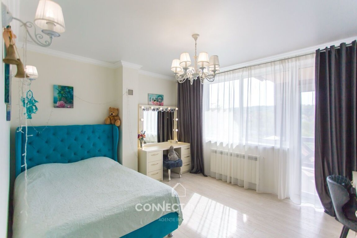 Spre vânzare casa deosebită ce îmbină designul modern cu finisajele premium. Cu o suprafață totală de 410mp și un teren generos de 6 ari, această casă pe 2 niveluri oferă tot confortul și funcționalitatea de care aveți nevoie. Detalii pe nivele: Nivelul 1- living spațios, elegant mobilat și integrat cu bucătăria, plus un grup sanitar. Nivelul 2- 4 camere luminoase, fiecare perfect compartimentată și un balcon cu vedere frumoasă. Dotări și finisaje: *Euroreparație modernă, materiale și mobilă de calitate superioară; *Încălzire autonomă cu pardoseală încălzită pe întreaga suprafață; *Ferestre panoramice generoase, care conferă lumină naturală și o atmosferă aerisită; *Spații elegant amenajate, cu accente hi-tech și detalii de design; *Locație liniștită și in apropiere de infrastructură urbană. Acces facil la transportul public în orice direcție a orașului. ATENȚIE! Acum poți achita comod în rate cu doar 20% rată inițială sau prin programul guvernamental Prima Casă cu doar 10% prima rată! Compania CONNECT IMOBIL vă ajută în procesul de vînzare-cumpărare a unui imobil, teren sau spațiu comercial, beneficiind de consultanță juridică în domeniul imobiliar și accesarea unui credit ipotecar. TOATE OFERTELE DISPONIBILE LE GĂSIȚI AICI https://w