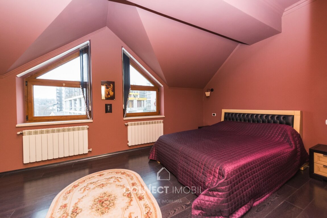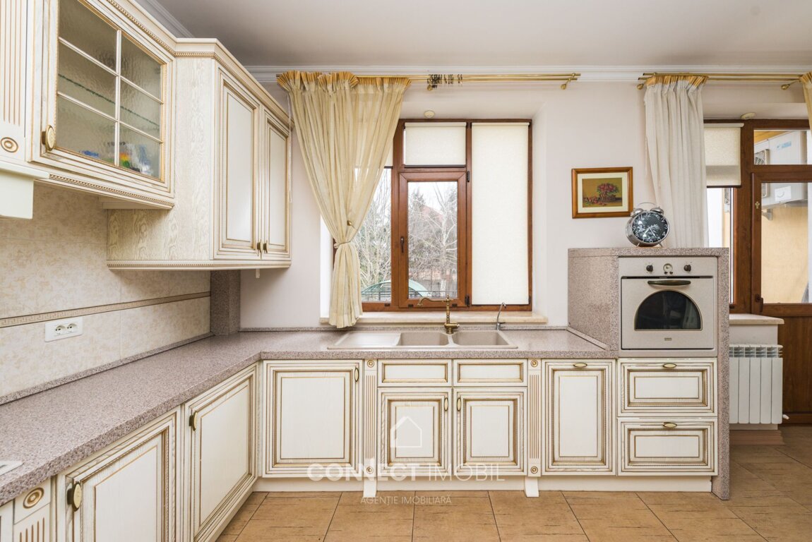 TOWNHOUSE PREMIUM ÎNTR-O ZONĂ DE ELITĂ A SECTORULUI CENTRU (în imediată apropiere de Complexul Memorial "Eternitate"). Se vinde townhouse exclusiv cu 4 niveluri, situat într-un prestigios sector privat din Centru, pe str. Ion Nistor. Proprietatea reprezintă combinația ideală între liniște, intimitate și acces rapid către infrastructura principală a orașului. • Suprafața: 256 m² • Teren: 1,5 ari (privatizat) • Statut: Dat în exploatare în anul 2005 • Stare: Euro reparatie, proiect de design individual. TEHNOLOGII ȘI CALITATEA CONSTRUCȚIEI: Casa este construită utilizând materiale de ultimă generație: • Structură: Carcasă din beton armat monolit, ce asigură rezistență seismică maximă. • Pereți: coteleț cu izolare termică și fonică. PLANIFICARE ȘI AVANTAJE: Spațiu bine gândit pentru o viață confortabilă: • 4 Niveluri: Inclusiv un subsol spațios pentru necesități tehnice, sală de sport sau vinotecă. • Terasă: La etajul 1 este amplasată o terasă generoasă cu vedere panoramică spre centrul capitalei. • Autonomie: Cazan în condensație (economie maximă la încălzire). • Inginerie: Toate comunicațiile orășenești sunt conectate. CURTE ȘI AMENAJARE: • Parcare: 1 loc de parcare chiar în curte. • Relaxare: Zonă de barbeque amenajată în curtea din spate pentru seri în familie. Acest townhouse este alegerea celor care apreciază calitatea materialelor și doresc să creeze interiorul visurilor într-unul dintre cele mai bune cartiere ale Chișinăului. Pentru informații suplimentare și .