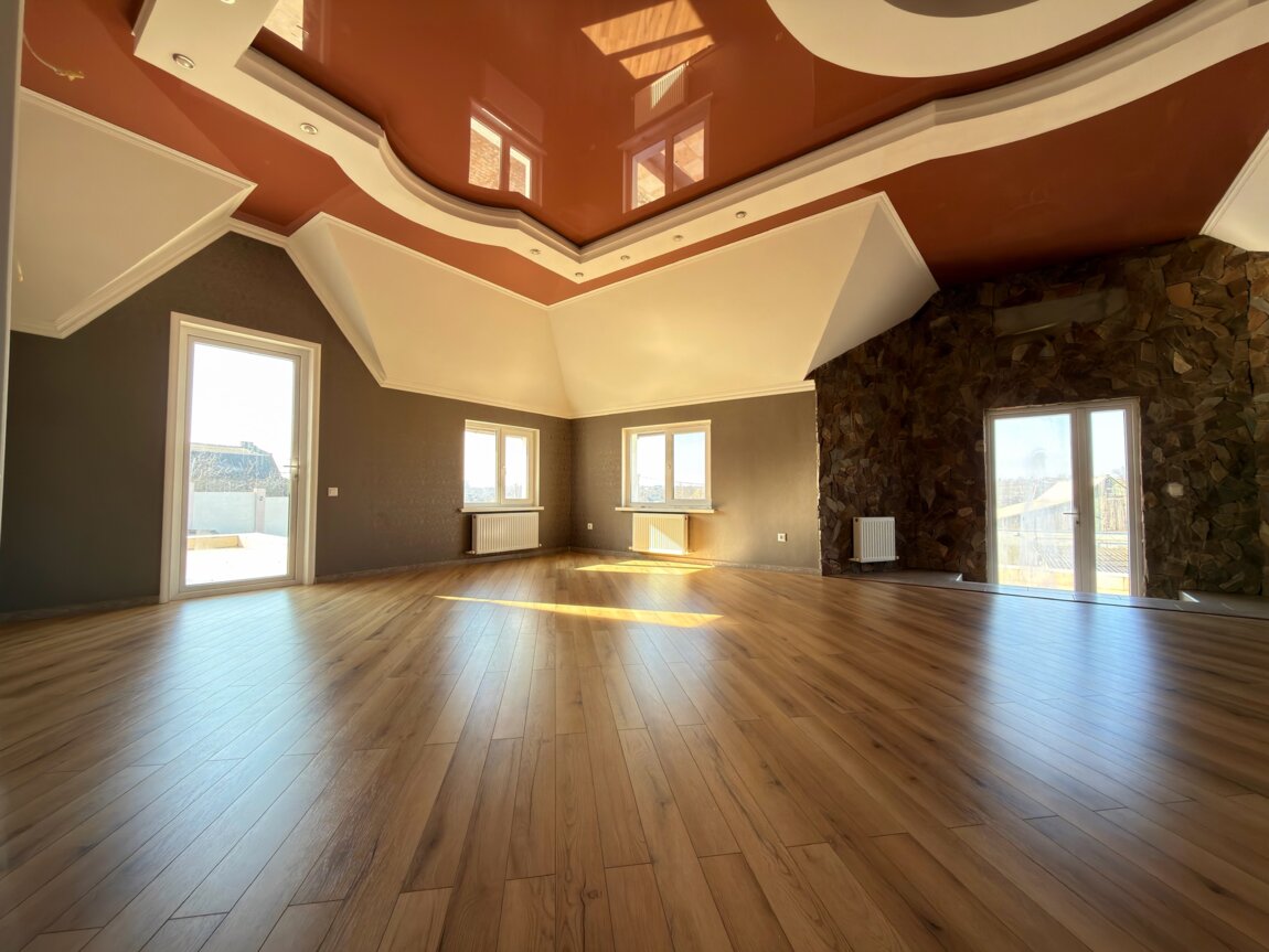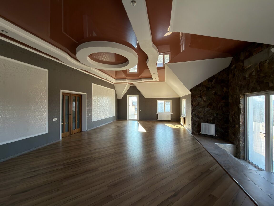 большой холл, светлая спальня с выходом на собственную террасу, 2 комнаты, санузел, большой зал 60 м² с выходом на большую террасу.