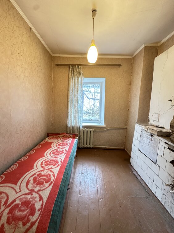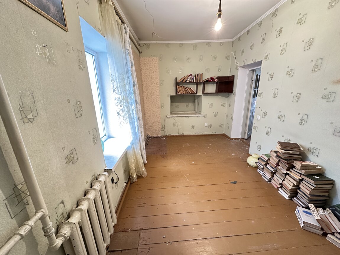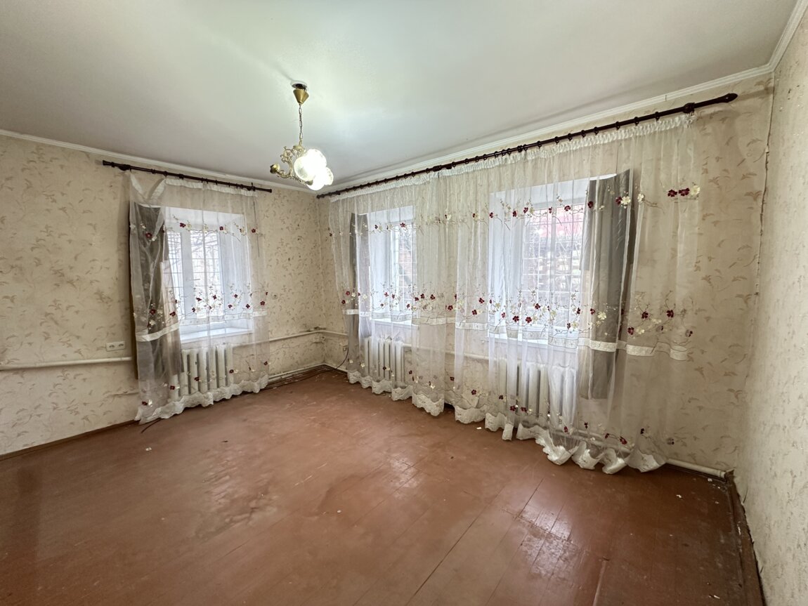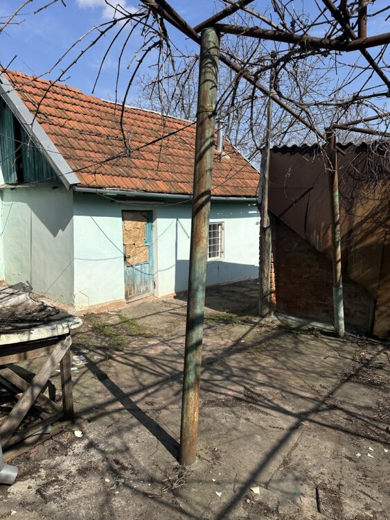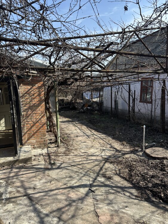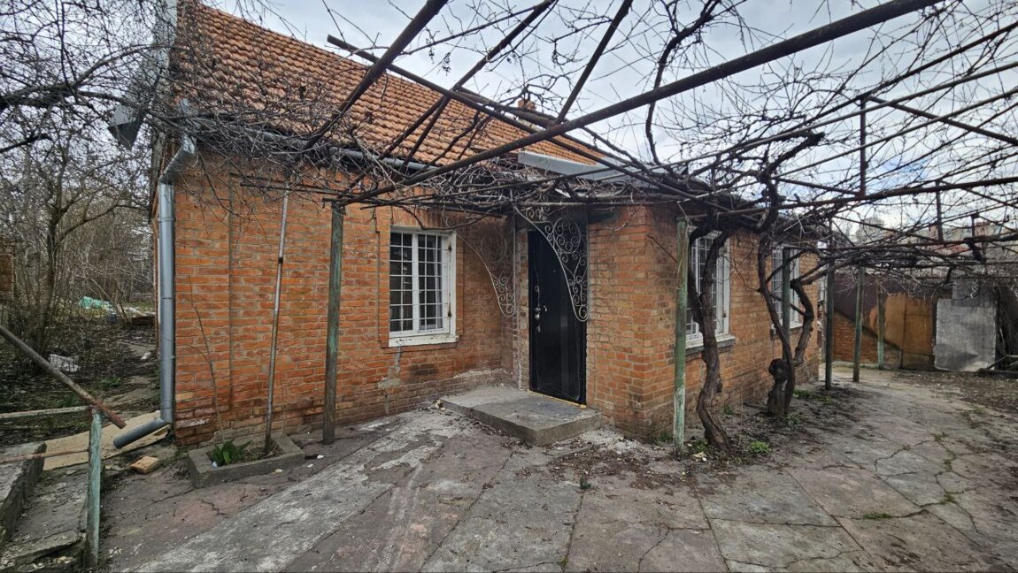 Дом саманный, небольшой, с кирпичной пристройкой.