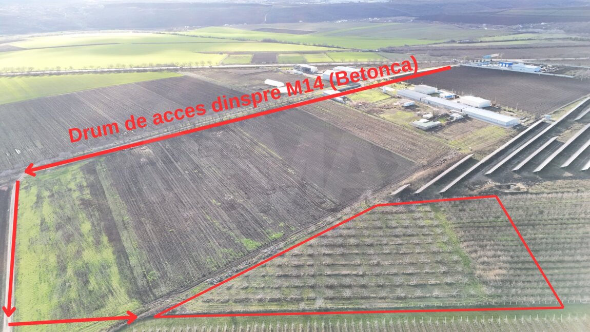 De vânzare teren agricol de 1,14 ha, situat la 10 km de Chișinău, în apropiere de traseul M14 (Betonca). • Acces ușor de la traseu • Sursă de apă și electricitate în apropiere Terenul dat este ideal pentru activitate agricolă, afacere, depozit sau parc fotovoltaic. Pentru detalii: 079000429 Suprafata_teren 114.