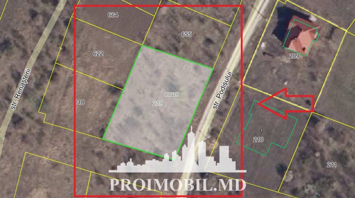 Spre vânzare se oferă teren pentru construcții, situat în Ghidighici, str. Podișului. Suprafața totală 10 ari. * Conectat la toate comunicațiile; * Zonă ecologică; * Este posibil de cumpărat jumătate de teren (5 ari). Zonă cu infrastructură dezvoltată și acces la tranport public în orice direcție! În apropiere de: magazin, stație de transport, farmacie, bancă, spital, școală, etc. (d.f.) Pentru prezentare și alte detaliivizitați www.proimobil.md saune contactați!Situat în localitate. Telefon: 3737808888 Пригород, Гидигич Подишулуй На продажу предлагаетсяземельный участок подстроительство,расположенныйвГидигич,, ул. Подишулуй.Общая площадь10 сот.* Подключен ко всем коммуникациям;* Экологическая зона;* Есть возможность выкупить половину земельного участка (5 сот.).Район с развитой инфраструктурой и доступом к общественному транспорту в любом направлении! Рядом: магазин, транспортная станция, аптека, банк, больница, школа и т.д. (д.ф.) . Телефон: 3737808888