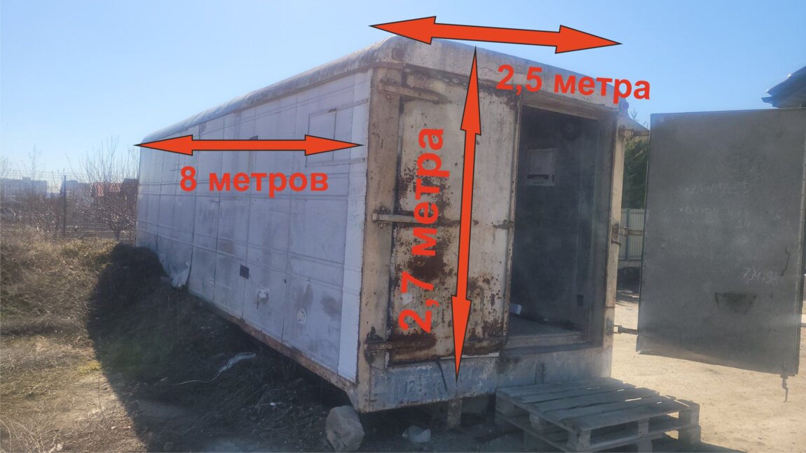 Наружные размеры: длинна 8 метров х ширина 2.5 метров х высота 2.7 метра