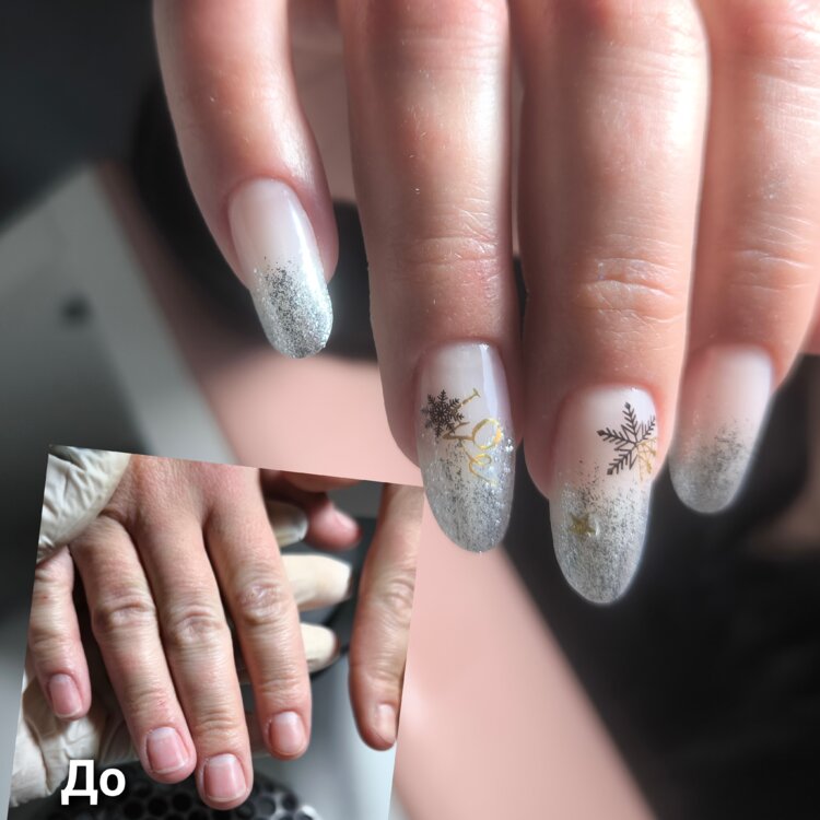 Маникюр + достраивание углов, восстановление + укрепление + цвет, дизайн (при желании)200р